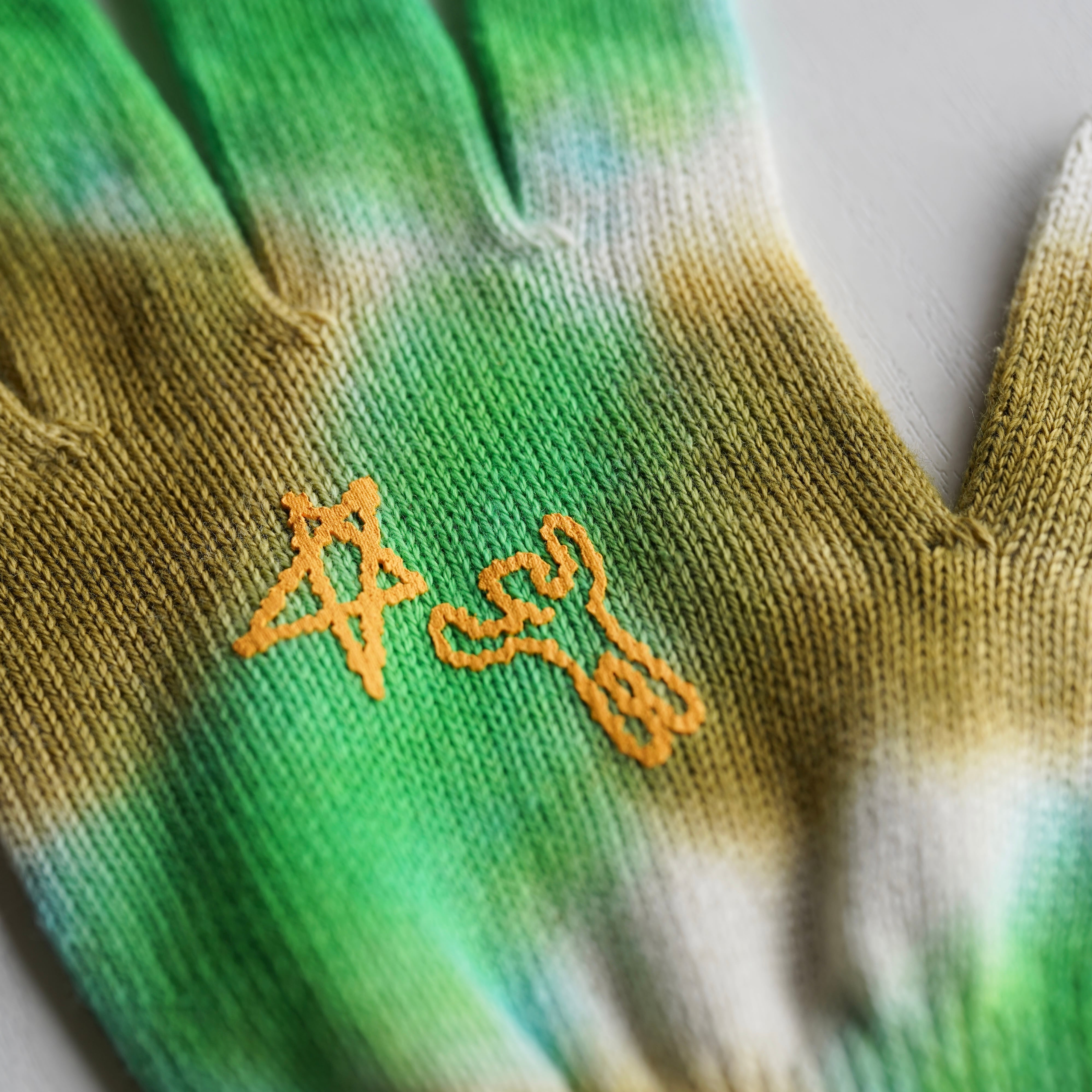 染色とシルクスクリーンプリントを施した手袋を作りました。